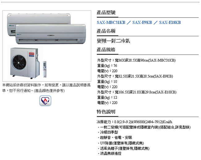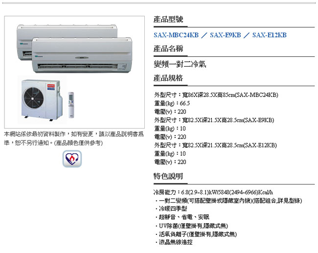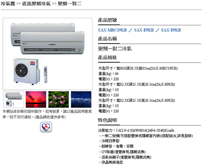 │ 商品介紹 ─ 三洋冷氣 → 家用變頻空調
