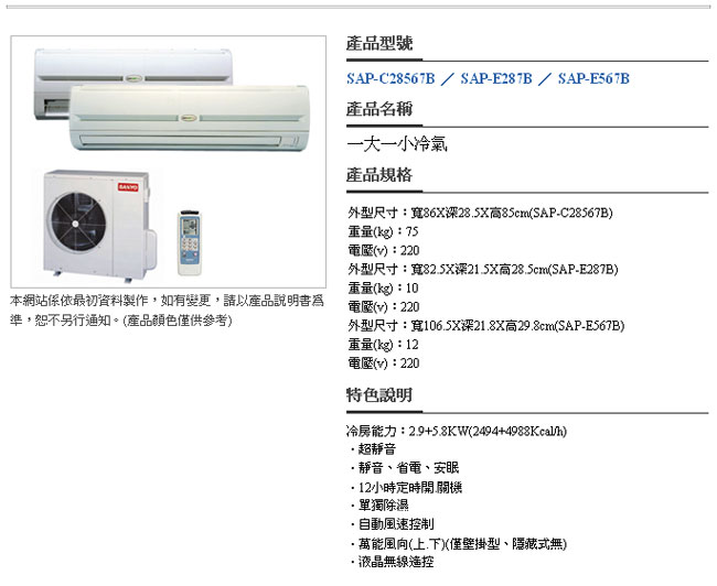 │ 商品介紹 ─ 三洋冷氣 → 家用變頻空調